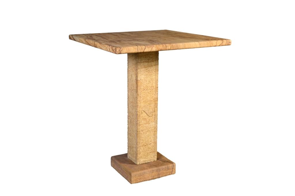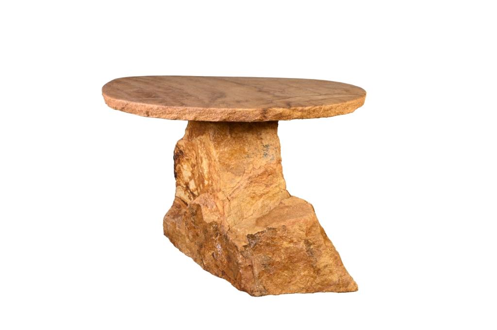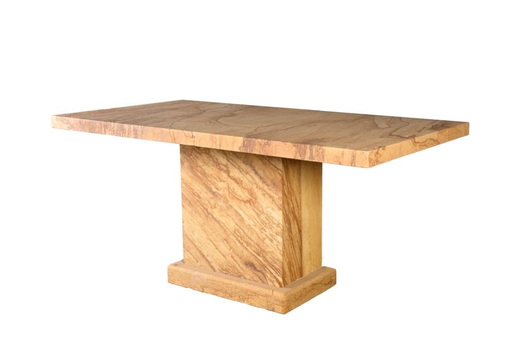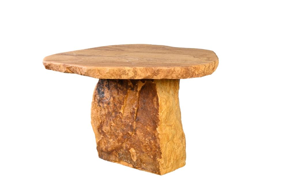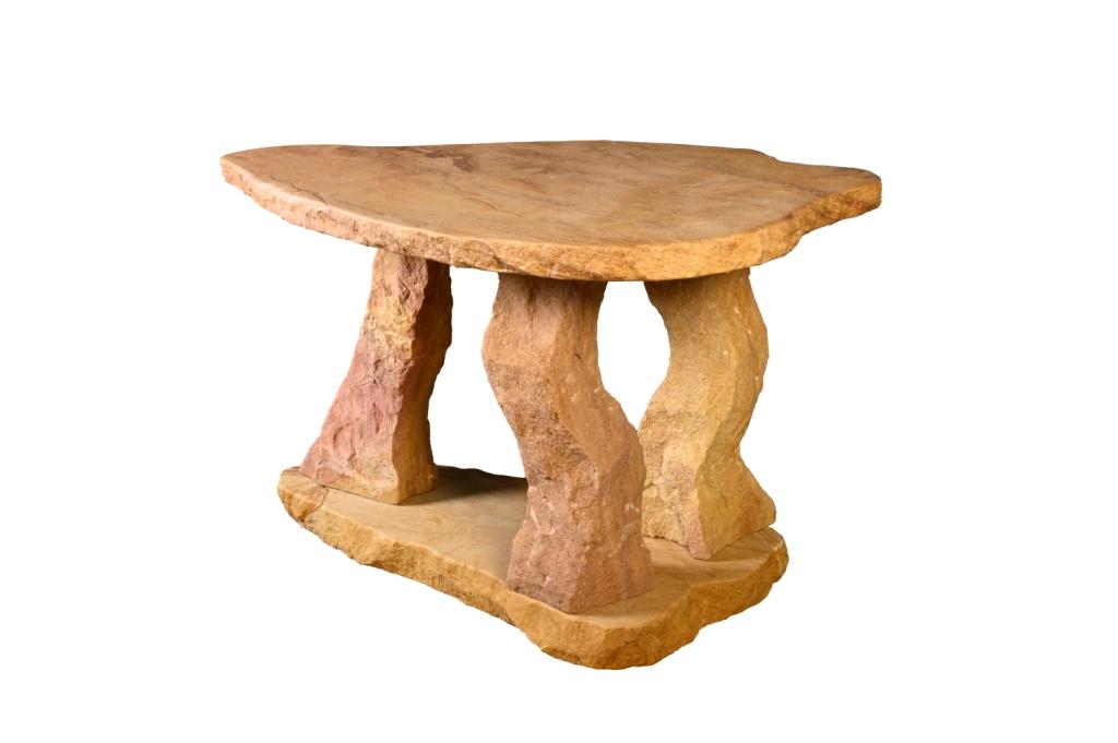 Na desky stolu používáme nejkvalitnější a nejtvrdší pískovec v ČR, který se výborně hodí na výrobu kamenných stolů. Konstrukce stolu se povětšinou skládá z masivní středové nohy, na kterou je usazena pískovcová deska, strojově oddělená z velkého kusu masivního kamene. Na výrobu desek stolu pečlivě vybíráme pískovcové balvany, které mají unikátní kresbu a barevnou strukturu, kterou žádný jiný pískovec těžený v ČR nenabízí.
