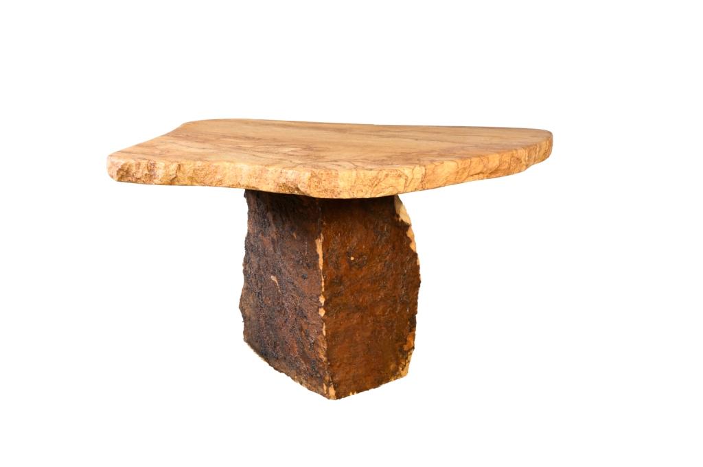 Nechybí posezení u masivních dubových stolů, navržených rovněž Karlem Hrdinou. Tabule stolu leží na masivních dřevěných nohách, jejichž spodní část tvoří kameny sekané unikátní technikou do kruhu. Podlaha s broušeným povrchem je rovněž z přírodního pískovce ve stylu anglické dlažby. Nepravidelné kousky jsou nasekány a spasovány na spáru 2 cm k sobě a vyspárovány spárovací hmotou.