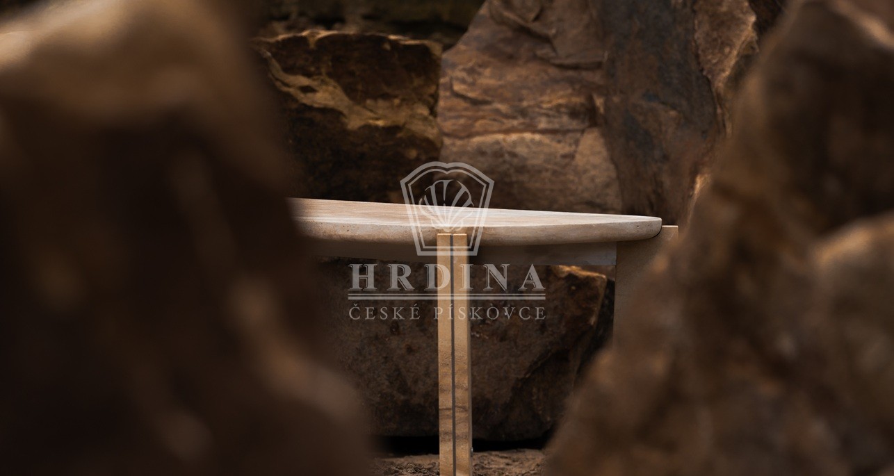 Každý stůl je tesán z vyhnánovského pískovce s jedinečnou kresbou zvanou Slunce. Tento kámen nesl historii Pražského hradu, Kuksu či Karlštejna, a nyní se stává součástí vašeho domova.