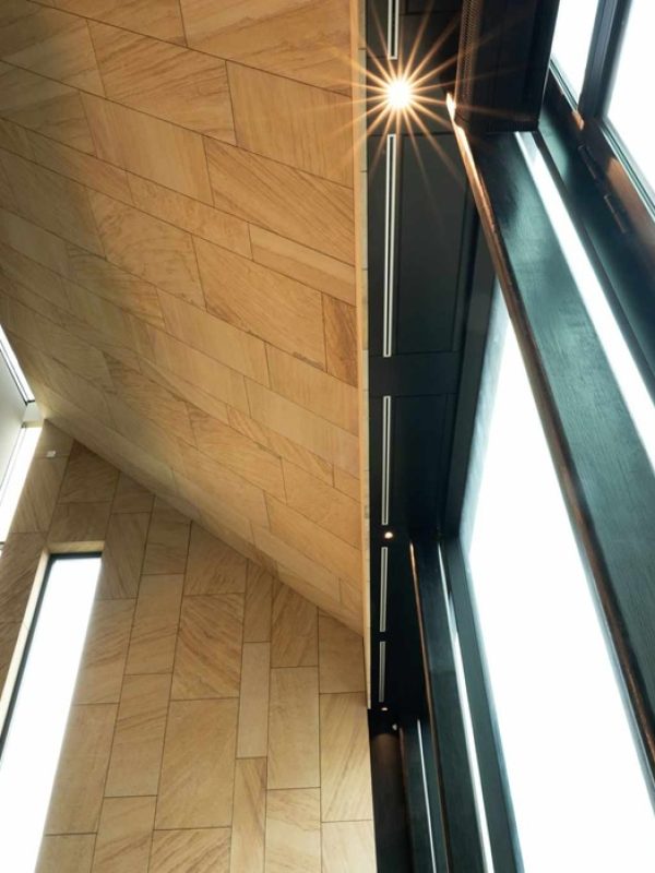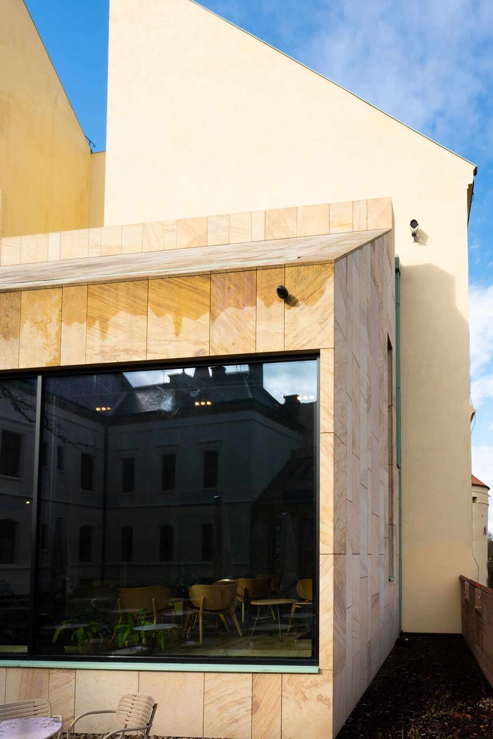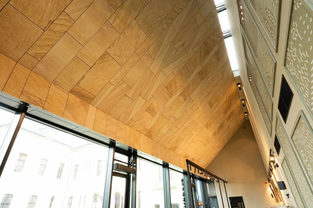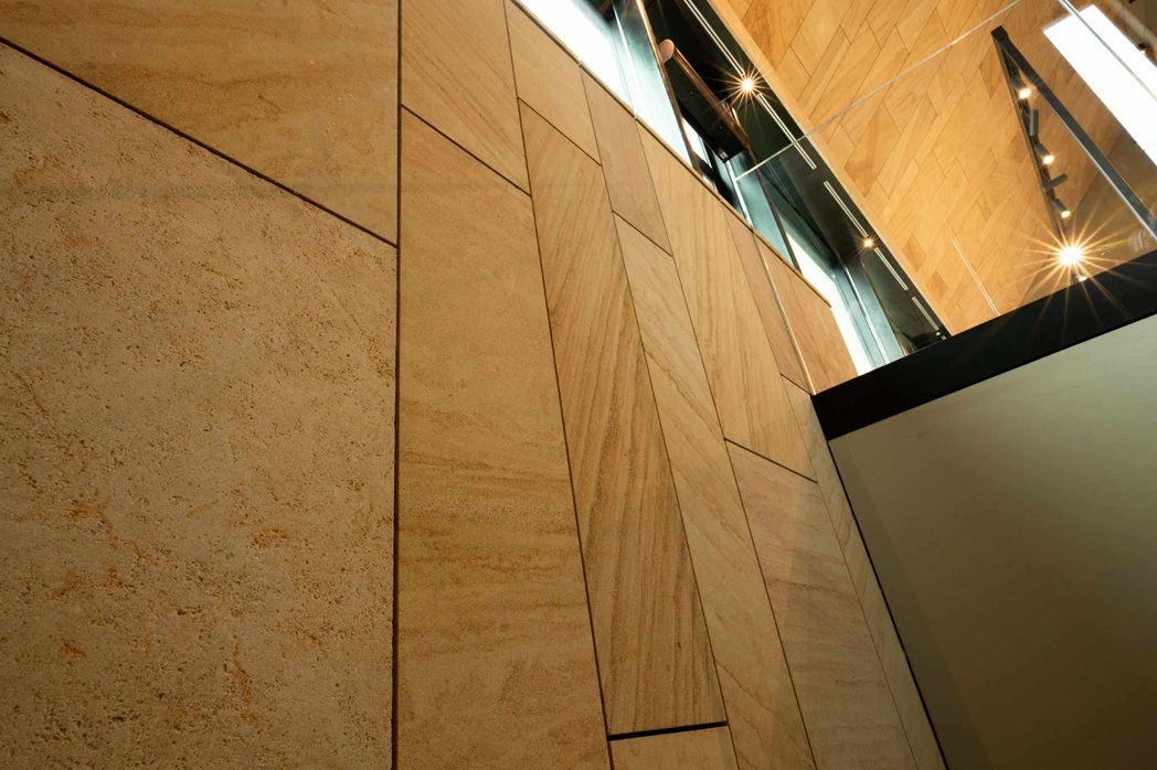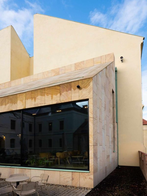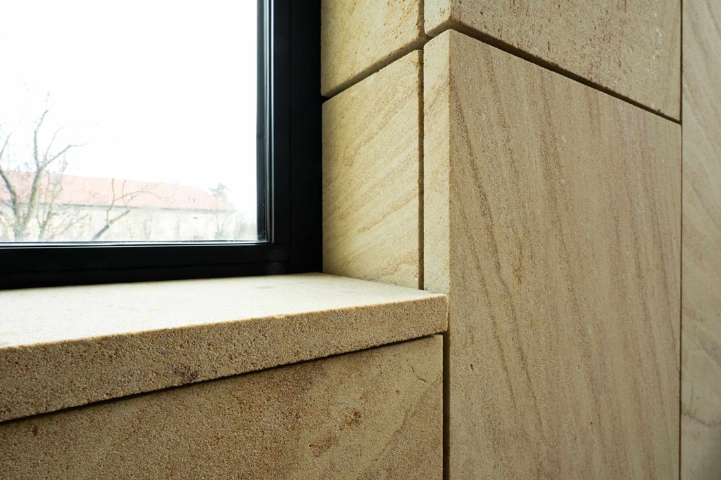 Jemná kresba, teplý naturel a vysoká odolnost umožňují vést dialog mezi historií a současností. V interiéru i na fasádách se materiál chová důstojně, bez efektu, ale s patinou, která časem krásní. Je to hmota, která se mění v architektonické gesto — bez zbytečných slov, s naprostou pokorou k místu.