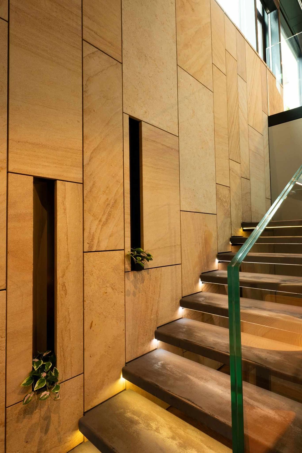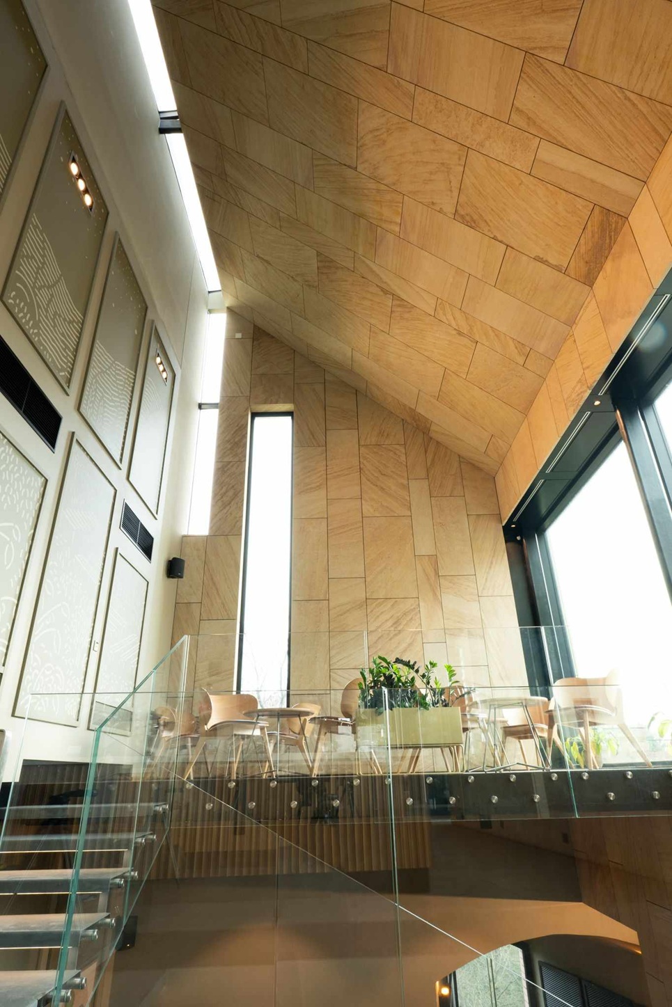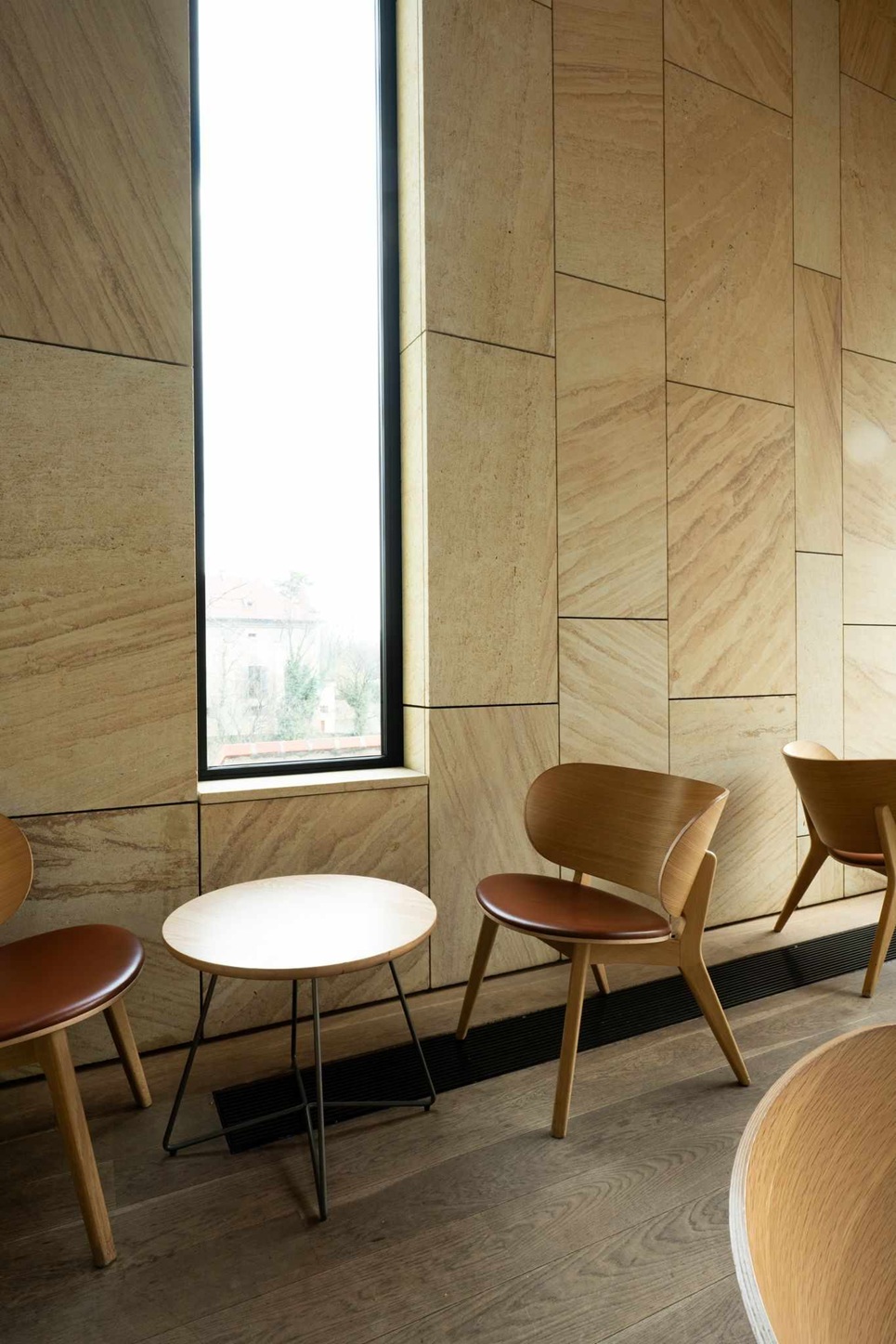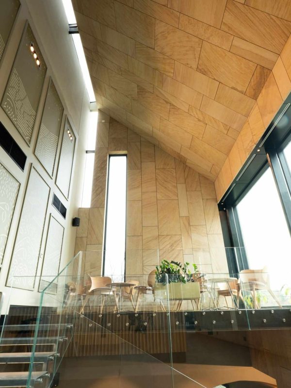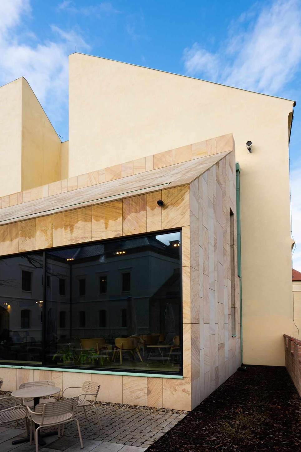 Jemná kresba, teplý naturel a vysoká odolnost umožňují vést dialog mezi historií a současností. V interiéru i na fasádách se materiál chová důstojně, bez efektu, ale s patinou, která časem krásní. Je to hmota, která se mění v architektonické gesto — bez zbytečných slov, s naprostou pokorou k místu.