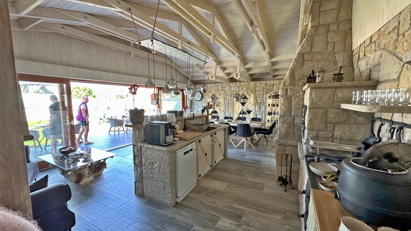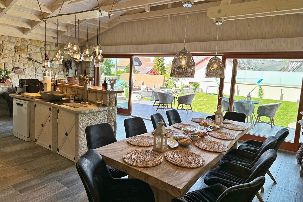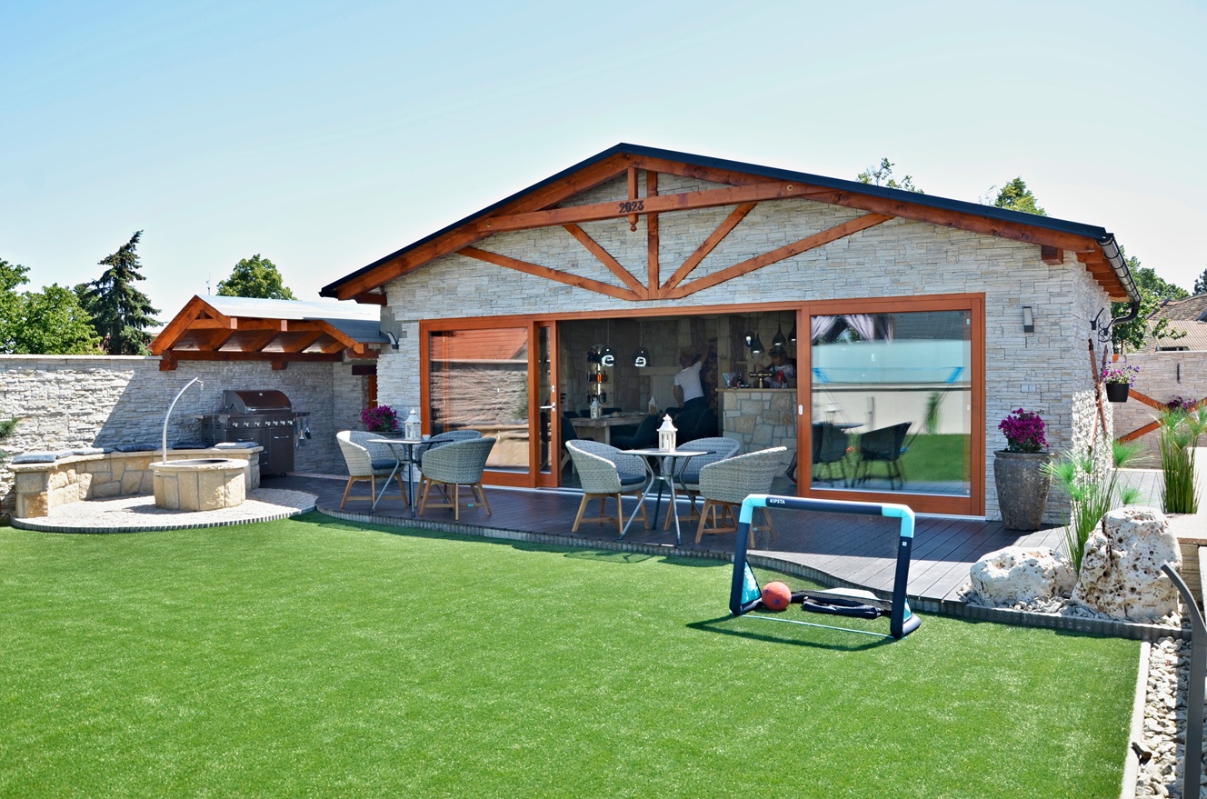 Výsledkem je funkční a odolná venkovní kuchyně, která zvládne jak běžné vaření, tak i větší společenské akce hostů.