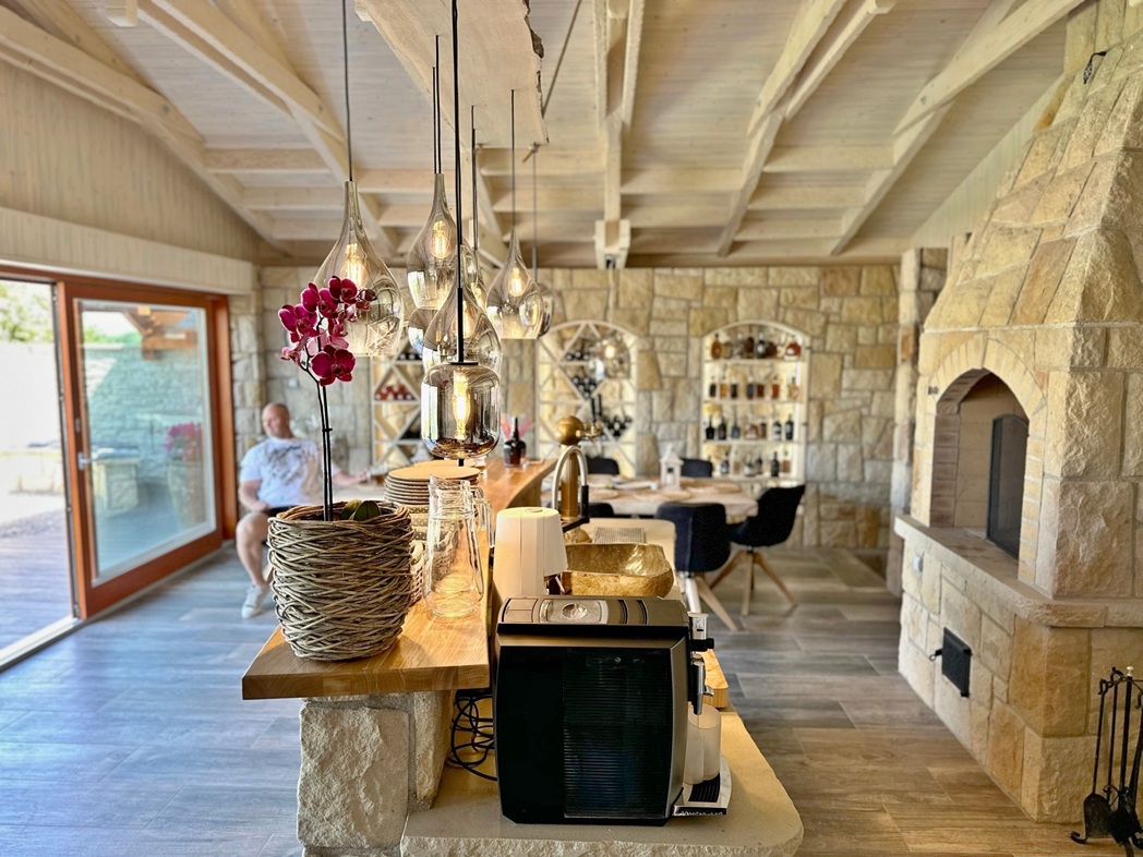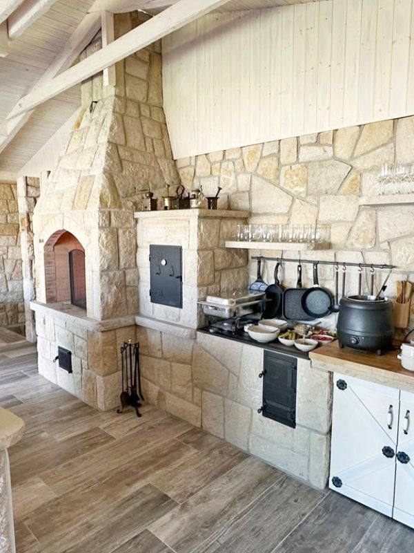 luxusní kamenná zahradní kuchyně s krbem Pálava
