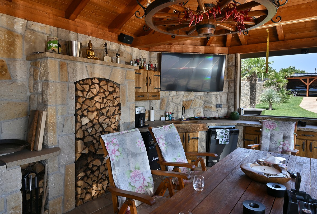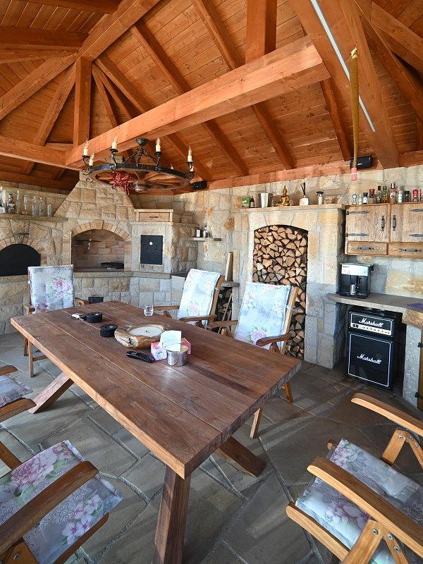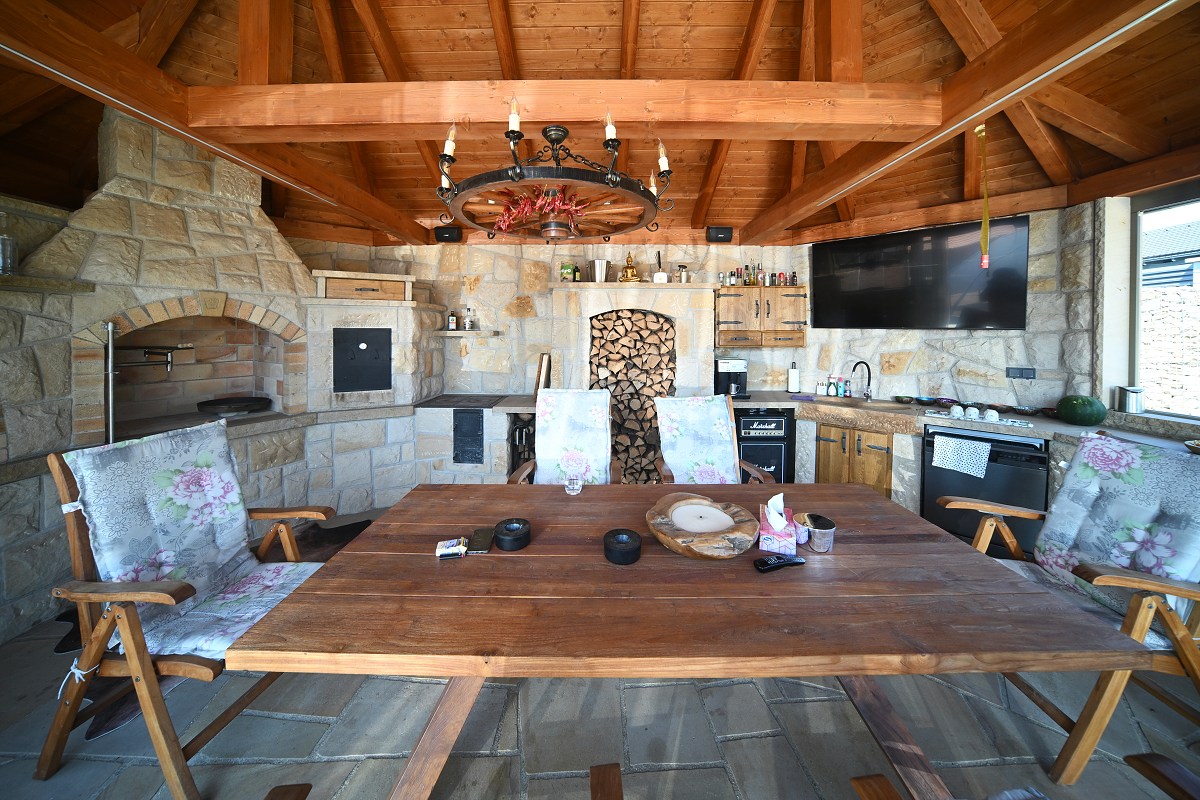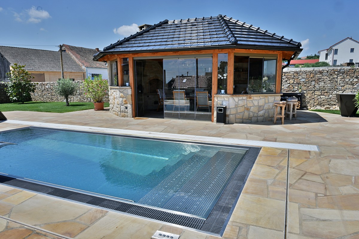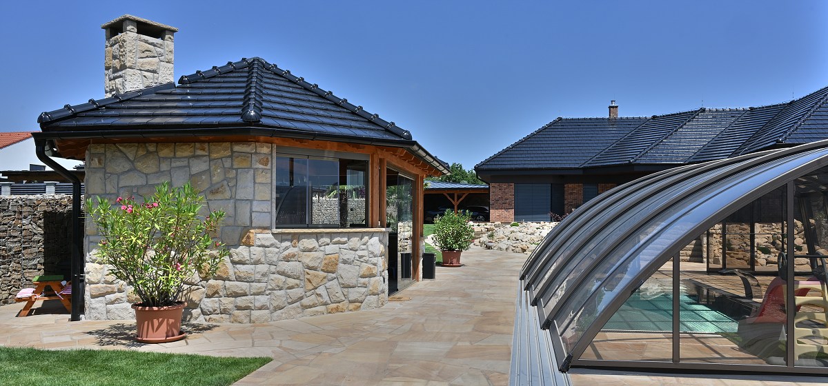 - rozsáhlé venkovní dlažby v okolí pergoly a bazénu